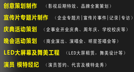 多年的行業(yè)淬練、豐富的制作經(jīng)驗(yàn)使我們建立起一支專業(yè)、高效、富有創(chuàng)造力的團(tuán)隊(duì)——國(guó)家級(jí)的導(dǎo)演,為全片制作指點(diǎn)乾坤;睿智的策劃撰稿,妙筆點(diǎn)亮全片靈魂;成熟的執(zhí)行導(dǎo)演,拍攝中統(tǒng)籌畫面效果;老到的攝影師,嫻熟地記錄各式場(chǎng)景;還有新銳的后期編導(dǎo),用靈感為作品增色;充滿熱情的剪輯師、動(dòng)畫包裝師,讓畫面效果更為精彩繽紛;才華橫溢的音樂制作人,帶來(lái)渲染氣勢(shì)的合片旋律……不同的工種通力合作,眾志成城,為一個(gè)完美影視作品的誕生齊心協(xié)力。